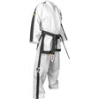 Elevate your presence as a Taekwondo Instructor (4th–6th Dan) with the TOP TEN “Premium Gold” ITF Instructor Dobok — a symbol of mastery, precision, and authority. Designed to reflect your high rank, this premium ITF-approved uniform features distinctive black 4 cm embroidered stripes on the jacket hems, shoulder seams, and side panels, visually marking your instructor status with elegance.